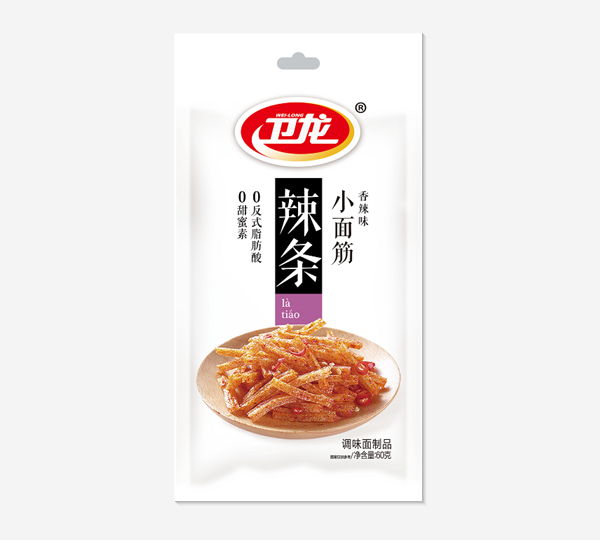 精选优质小麦,一级大豆油,味道醇正浓郁、香辣适口; 0反式脂肪酸 、0甜蜜素 挤压熟制,非油炸,小而韧,辣感柔,丝丝入味,柔韧带劲。